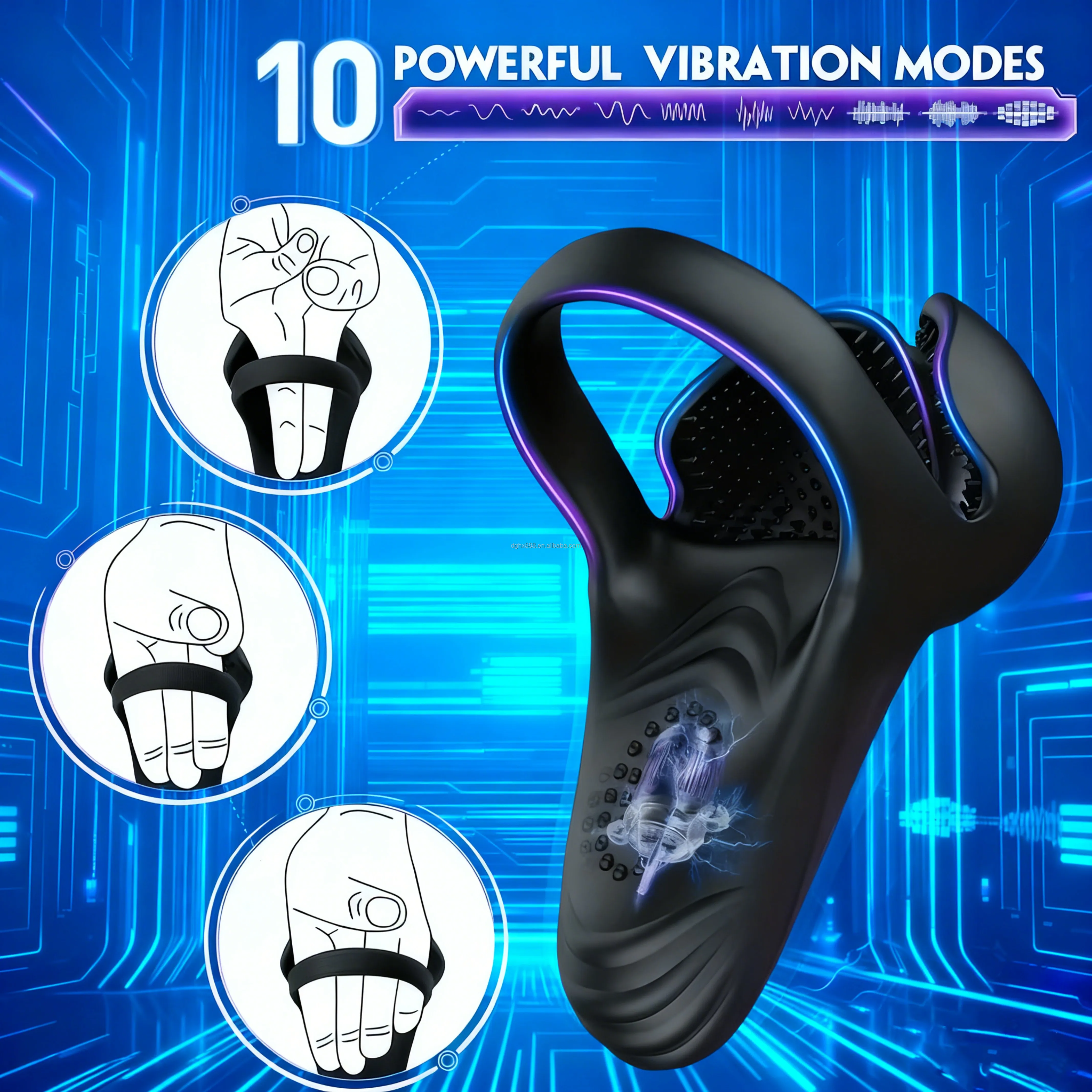 10 vibration modes for unlimited pleasure - This vibrating cock ring sex toy has 10 vibration modes specifically designed to stimulate the scrotum and perineum, ensuring continuous arousal while slowing blood flow and prolonging erection. The multiple vibration modes of the cock ring vibrator can satisfy your every sexual desire, allowing you to experience the pleasure of ejaculation in different modes.